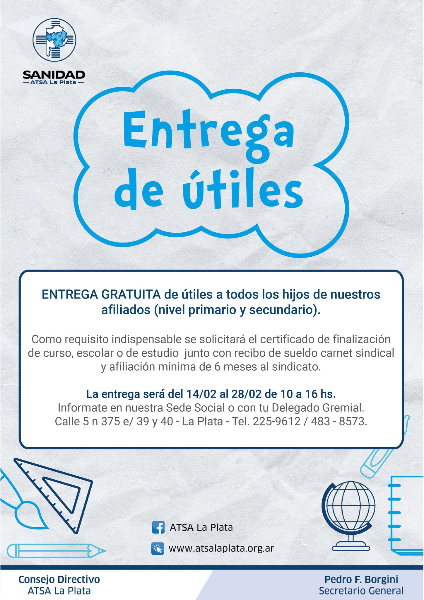 A partir del próximo 14/02 hasta el 28/02 los esperamos para retirar los útiles escolares. La entrega se realizará en nuestra sede social de 10 a 16 hs. Para más información y/o consultas pueden comunicarse a los tels 421-6023/425-9612/483-8573 interno 1105.Los/as afiliados/as inscriptos online serán llamados a la brevedad para retirar los útiles de manera organizada y para no tener demoras en la entrega.