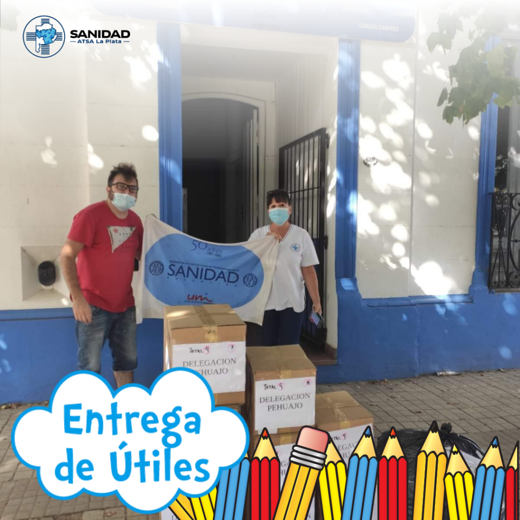 ATSA La Plata a través del Secretario Adjunto Ricardo Padrón y acompañado de Delegados/as Gremiales recorren el interior de la Pcia de Bs As haciendo entrega de los útiles escolares en cada Delegación, para que llegue a cada hijo/a de afiliados/as