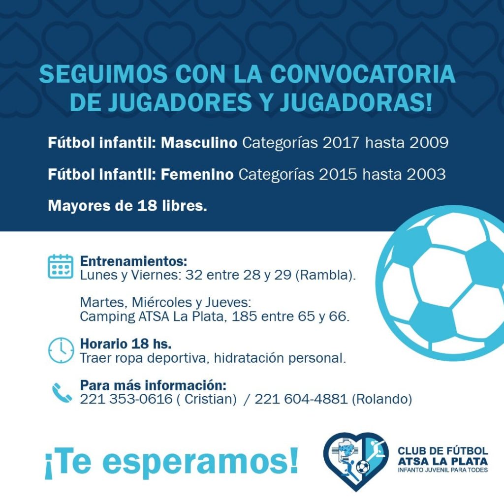 Home Sec. de Deporte Fútbol infantil 7 marzo, 2022 Continuamos con la convocatoria para que seas parte del Club de Fútbol de ATSA La Plata. Navegación de entradas Anterior: Día Mundial del HPVSiguiente: Capacitación Mas publicaciones Afiliado Destacado En los medios Home Novedades Salud Sec. de Prensa Últimas Noticias Congreso de Salud Provincial 2026 17 abril, 2026 Destacado Home Novedades Salud Últimas Noticias Día Mundial de la Hemofilia 17 abril, 2026 Afiliado Destacado Home Novedades Salud Sec. de Accion Social Sec. de Prensa Sec. Gremial Últimas Noticias Apertura del Centro Médico Sanidad Buenos Aires 14 abril, 2026
