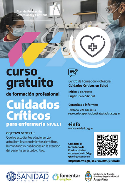 ATSA LA PLATA te informa sobre el curso de Cuidados Críticos.