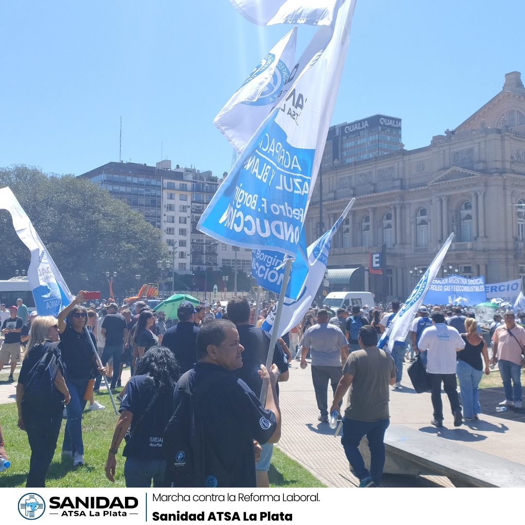 Desde SANIDAD ATSA La Plata acompañamos hoy la movilización convocada por la Confederación General del Trabajo (CGT), a los Tribunales porteños, en respaldo a la presentación judicial contra la Reforma Laboral aprobada el pasado viernes en el Senado.