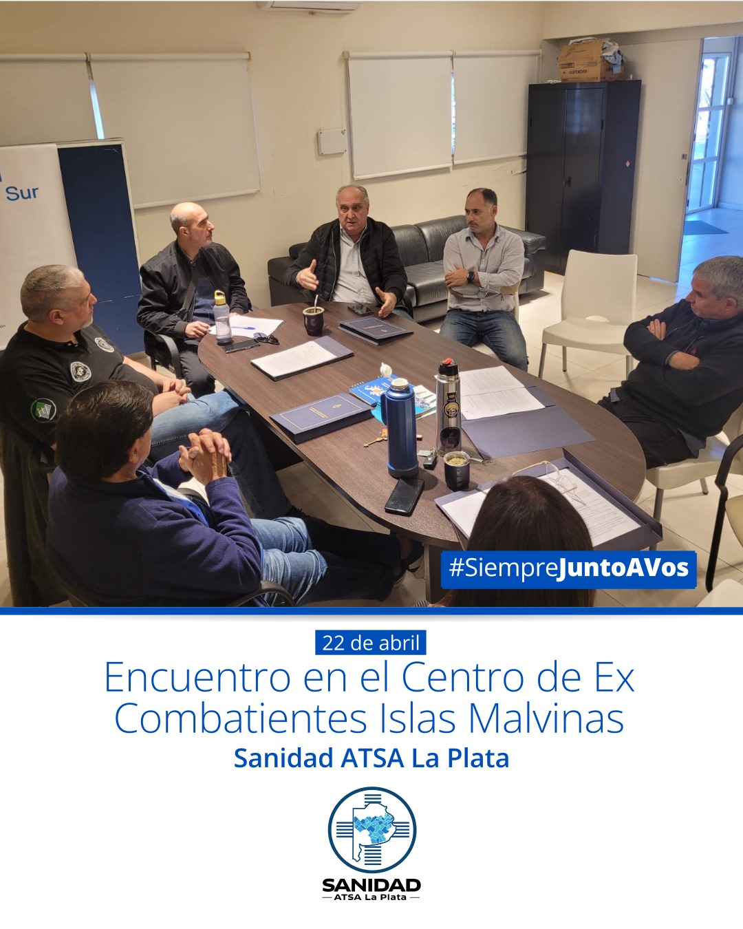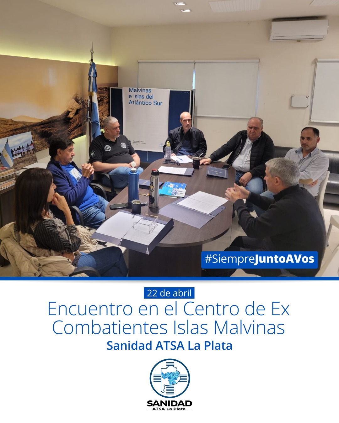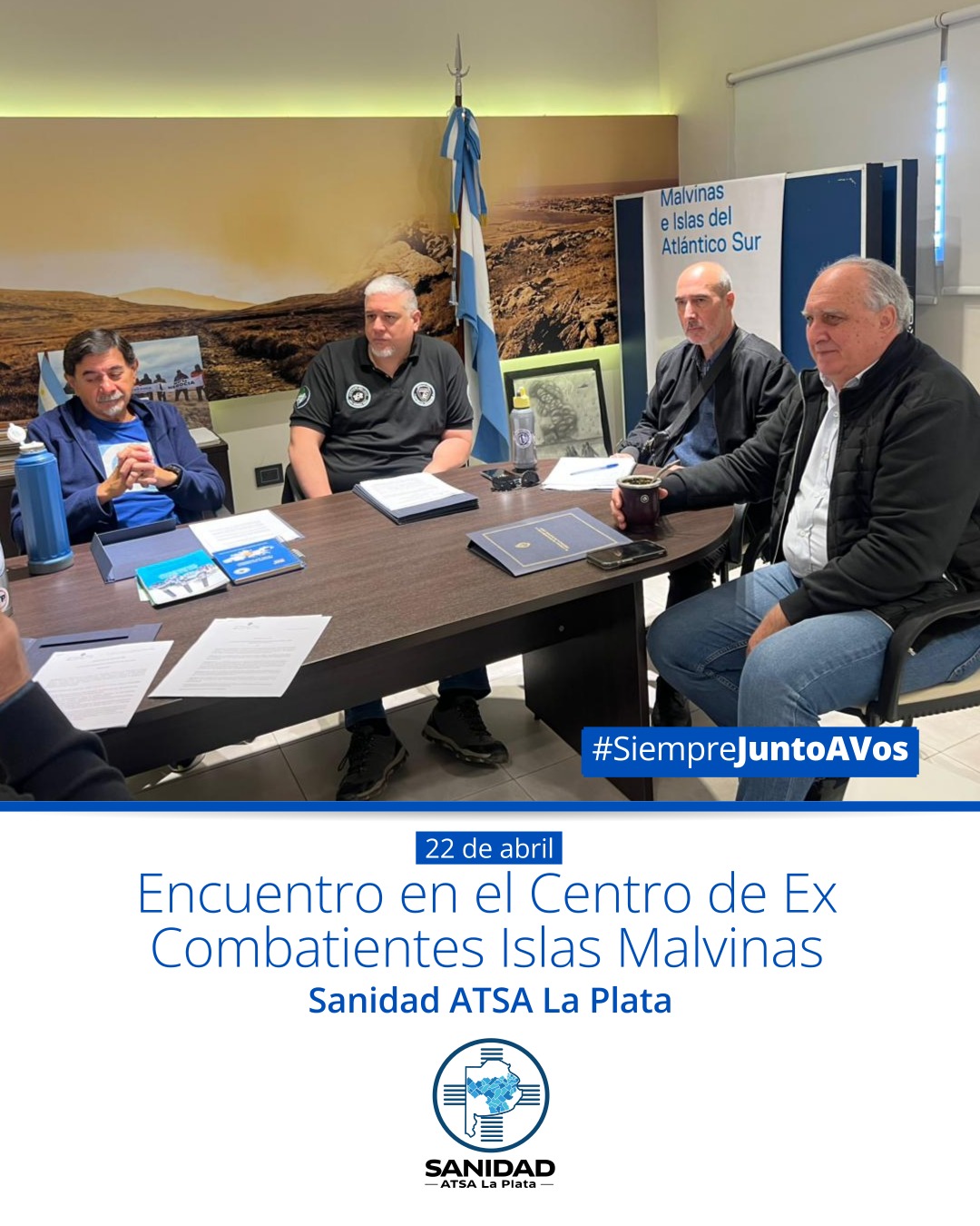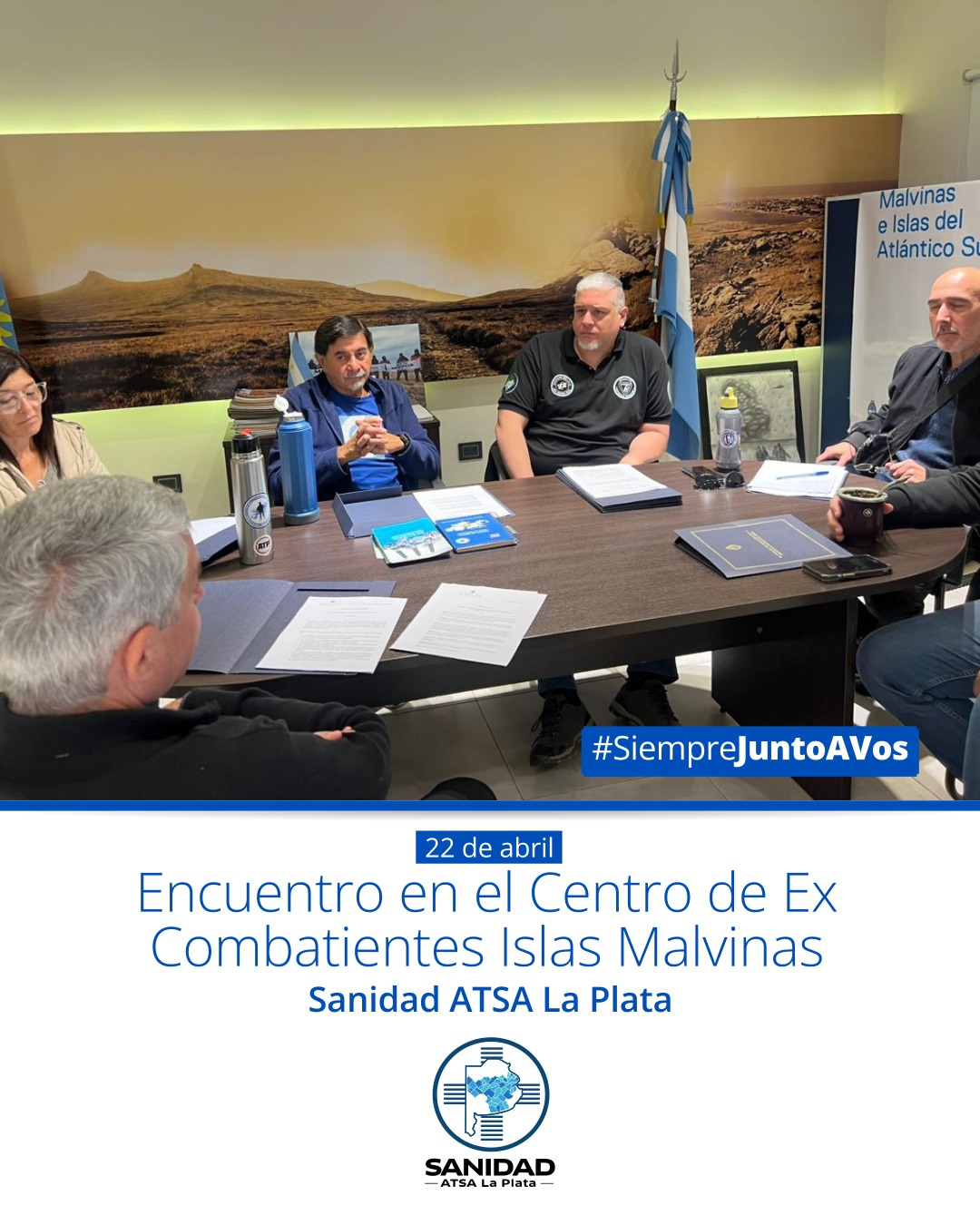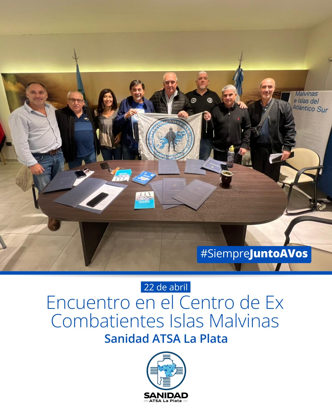 📣Desde SANIDAD ATSA La Plata mantuvimos un importante encuentro con el presidente del Centro de Ex Combatientes Islas Malvinas (CECIM), Rodolfo Carrizo, junto a integrantes del CECIM La Plata: Silvia Vega Newbery, directora del Centro Cultural y de la Memoria Malvinas; Ernesto Alonso, Fernando Terminiello y Fernando Marino.